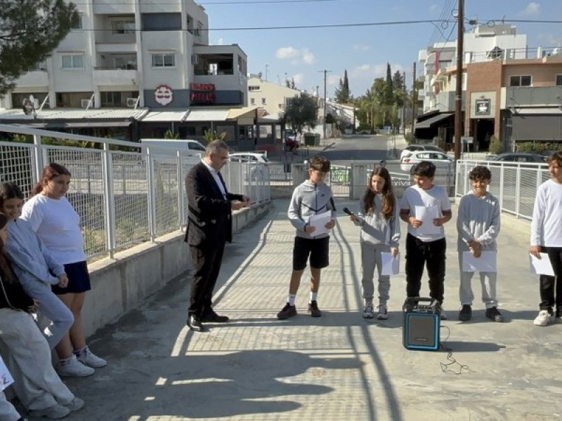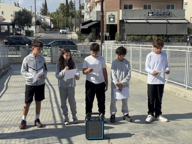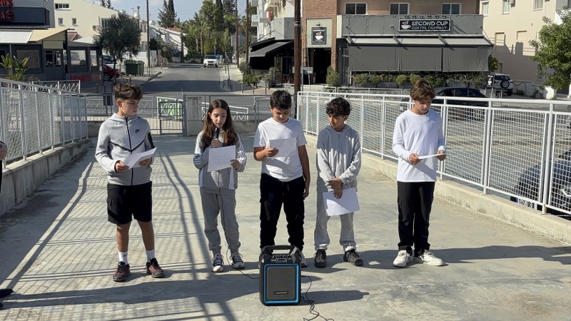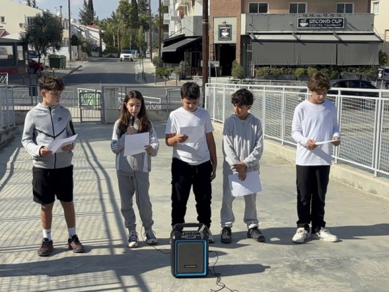 Τα παιδιά διοργάνωσαν εκδήλωση καταδίκης του Ψευδοκράτους στο προάυλιο του σχολείου μας. Στην συνέχεια επέδωσαν ψήφισμα καταδίκης στον Αντιδήμαρχο Λατσιών.